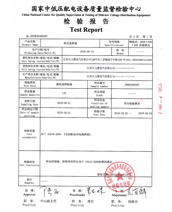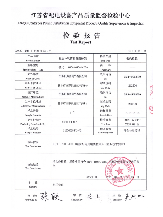 钢制电缆桥架检验报告